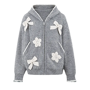13DE MARZO MZ2600401 CROCHET TRIMMED KNITTED HOODIE GREY
